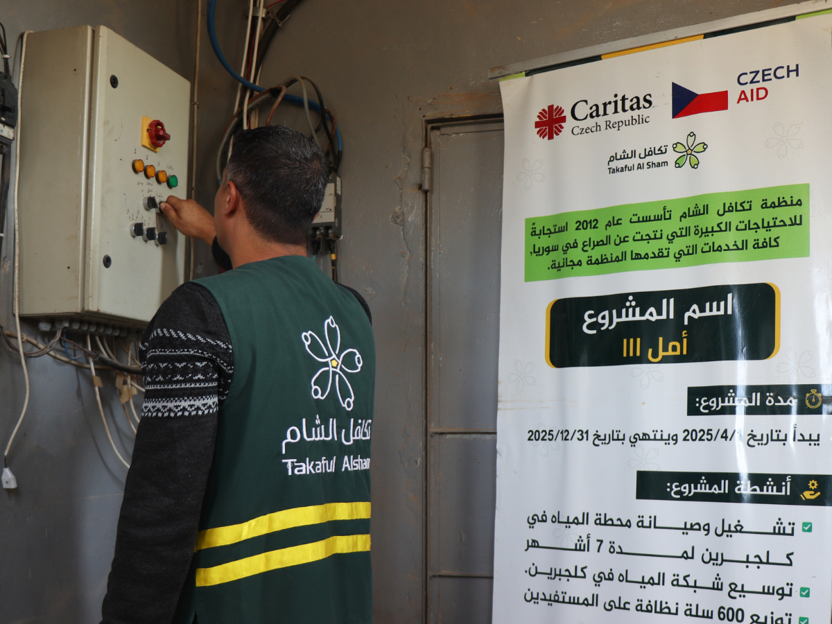 Donedávna musel Majed ze Sýrie každé tři dny kupovat drahou vodu pro celou rodinu. Dnes má díky Charitě Česká republika vlastní zdroj čisté vody, které je dostatek pro potřeby domácnosti i k zavlažování úrody. Ve spolupráci s organizací Takaful Al-Sham jsme totiž zprovoznili zdejší čerpací stanici a obnovili vodovodní síť. Majed tak už za vodu nemusí platit a podstatně ušetří.